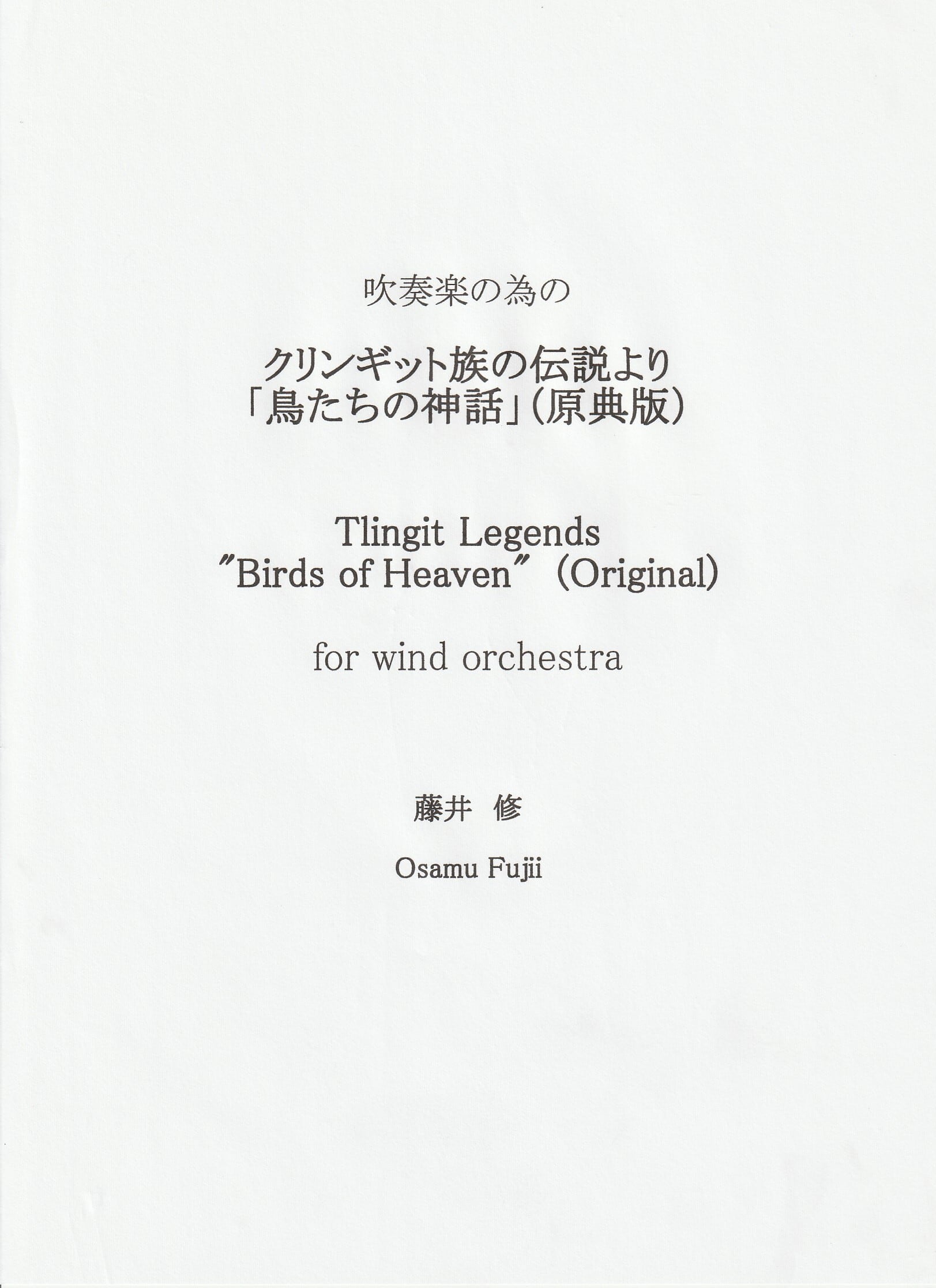 吹奏楽の為の「クリンギット族の伝説より 鳥たちの神話(原典版)」スコア&パート譜(Office Wisteria浄書 定価4500円)