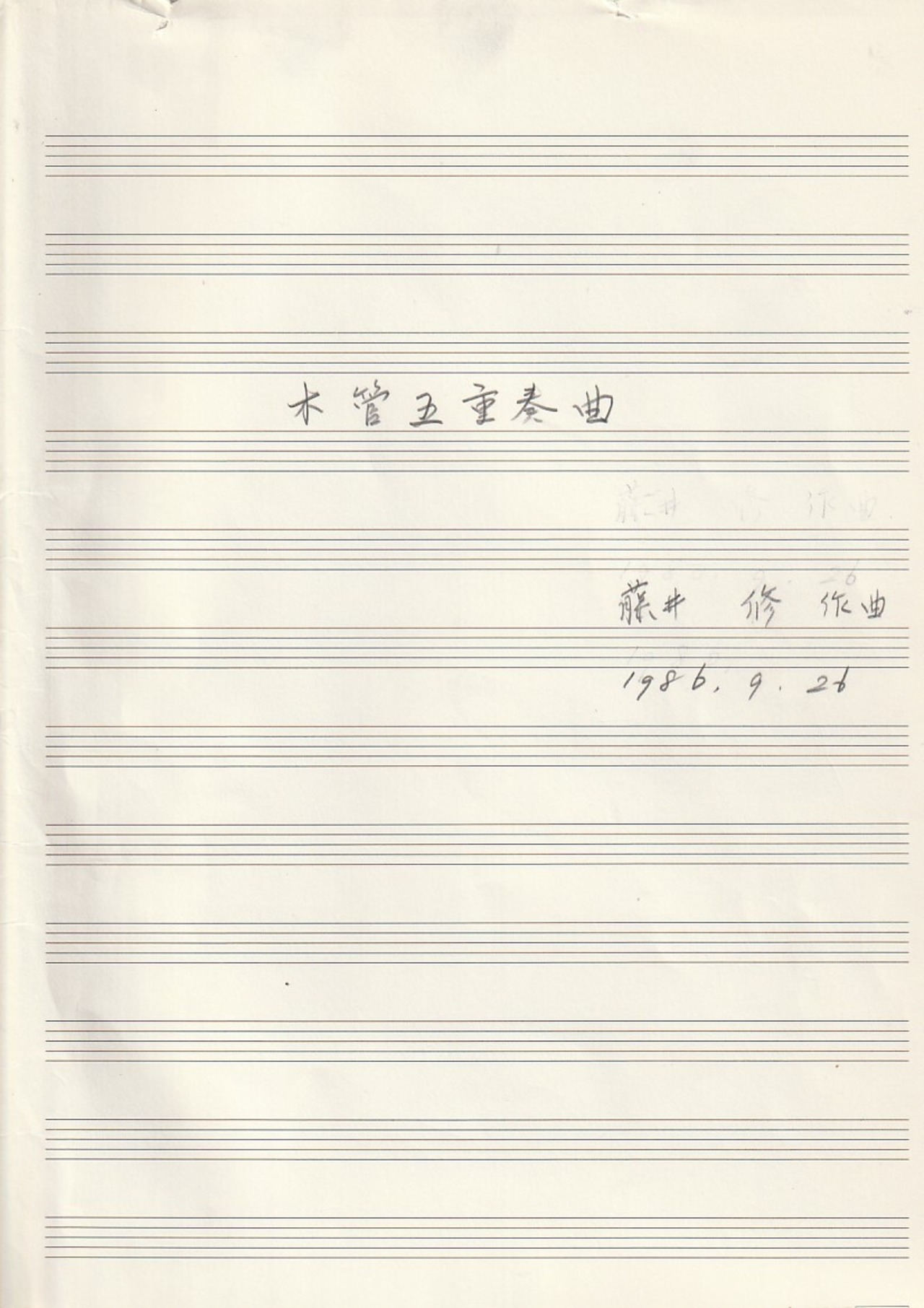 「木管五重奏曲」(手書きスコア・パート譜)