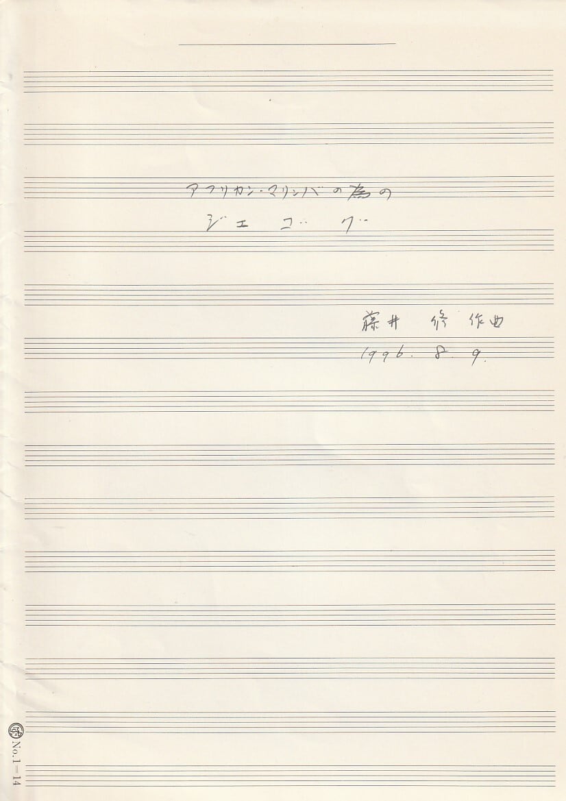 アフリカン・マリンバの為の「ジェゴグ」(手書きスコア)